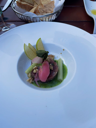 Read moreWir waren mit mehreren Leuten dort, 4 Personen wollten ein Menü, 2 Personen nur ein Hauptgericht. Der Kellner meinte, dies geht nicht, Menüs werden nur tischweise bestellt und ALLE müssten ein Menü nehmen. An diesem Abend waren gerade mal 13 unterschiedliche Gerichte (incl. Vor- Haupt- und Nachspeisen) auf der Karte. Wo ist das Problem, wenn die gewünschten Solo-Hauptgerichte einfach mit den Hauptgerichtsgang des 4-Gang-Menüs serviert werden? Oder sollten sich jetzt 2 Personen an einen anderen Tische setzen, damit das möglich ist? Der Kellner meinte darauf hin, ein 2-Gang-Menü wäre auch möglich, er würde uns dann den entsprechenden Preis nennen, bzw. dies so auf der Rechnung vermerken. Obwohl nicht viel Hunger haben wir uns auf ein 2-Gang-Menü eingelassen, damit die anderen ihr 4-Gang-Menü erhalten konnten. Da wir uns nicht sicher bei der Weinauswahl waren, wurde uns ein Weißwein und Rose Wein zum Probieren angeboten, die im gleichen Glas serviert wurden – ein absolutes No-Go! Der „Gruß aus der Küche“ wurde auch nicht weiter erläutert. Schlussendlich waren hierin Lebensmittel enthalten, auf die ein Gast allergisch war, was gottseidank vorher bemerkt wurde. Das Thunfischtartar war geschmacksneutral und ungewürzt. Garniert wurde es mit einer nicht passenden Lakritz-Creme. Die Trüffelravioli wurden lieblos, OHNE Trüffel und fast kalt serviert, die Ravioli pappten aneinander. Erst nachdem sie nochmals aufgewärmt wurden, waren vereinzelt ein paar Trüffelkrümel in Sandkorngrösse vorhanden, eine Frechheit, die Hälfte wurde zurück gegeben. Zum Nachtisch gab es nur langweiliges Tiramisu. Diese Gerichte haben wir woanders weitaus besser gegessen. Als dann die Rechnung kam, eine Überraschung. Es wurde nicht – wie besprochen – ein 2-Gang-Menü berechnet, sondern die Preise wurden normal berechnet. Somit haben 2 Personen weitaus mehr für nur 2 Gerichte bezahlt, als ein 4-Gang-Menü gekostet hat. Auf Nachfrage bei dem Kellner (mit Bart) ob ein Fehler unterlaufen sei, meinte er extrem pampig und unfreundlich, was wir denn wollten, er wäre uns ja schon entgegen gekommen, dass wir nur 2-Gänge bestellen durften. Eine absolute Frechheit, denn wir als Kunde sind mit dem Kompromiss des 2-Gang-Menüs entgegengekommen. Ist der Kunde eigentlich nicht König? Unflexibel, unprofessionell und der Beigeschmack der Abzocke nennt man ein solches Verhalten dem Kunden gegenüber, zumal die Gerichte auch keinen erhöhten Schwierigkeitsgrad haben, das hat mit Gourmet in allen Bereichen absolut nichts zu tun. Viel Chi-Chi und nichts dahinter. Obwohl in der Nachbarschaft werden wir dieses Lokal sicher nicht mehr besuchen. Bin gespannt, wie lange diese ehrliche Bewertung...
