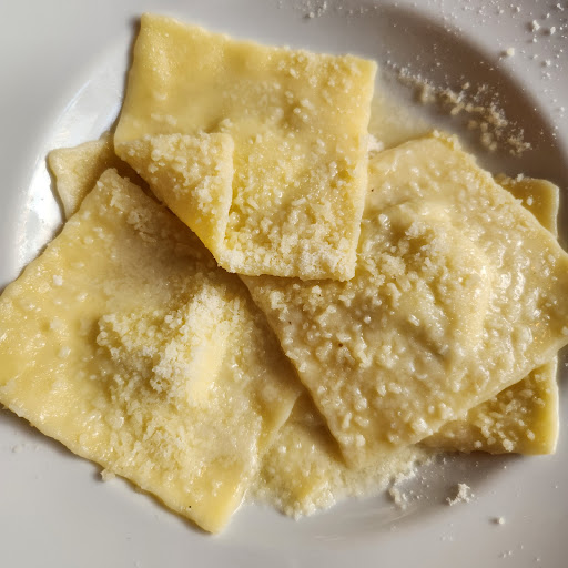 Als das Hauptgericht kam, war erneut Parmesan oben drauf. Ich reklamierte dieses bei einer Kollegin die gerade vorbeikam. Sie verschwand für etwa zwanzig Sekunden in der Küche um die Ecke in die wir Einblick hatten und kam mit einem Teller wieder. Zum einen hatte der Fettfinger und Fettschmieren am Rand die man eher an einem Rastplatz erwartet und zum anderen war da jetzt der Parmesan nicht obendrauf, sondern untergerührt (…). An der Stelle fühlte ich mich schon etwas auf den Arm genommen. Wenn die Geschichte hier zu Ende wäre, gäbe ich einen Stern. Ich reklamierte erneut bei einem Kollegen und bekam zehn Minuten später (als meine Freunde bereits mit dem Essen fertig waren) meine Steinpilznudeln ohne Parmesan. Der Herr entschuldigte sich, war sehr freundlich, sagte, er nehme das auf seine Kappe. Der Umgang der Herren mit dem, was schief lief war sehr gut und professionell und es können auch Fehler passieren, aber offensichtlich tut man hier trotz der gehobeneren Preisklasse etwas schwer mit dem Thema „bei der Bestellung den Salat bitte ohne Lachs“ oder „kein Parmesan auf die Nudeln“. Obwohl die Nudeln lecker waren und auch das Ambiente nett, würde ich hier nicht mehr einkehren, in erster Linie wegen des „untergerührten Parmesan“ nach der zweiten Reklamation, denn das ist für mich mehr als nur ein „Abzug in der B-Note“. Zum Glück ging es nicht um eine allergische Unverträglichkeit, dann kann sowas richtig böse enden. Sehr schade. Die Gerichte, die in der Küche zubereitet werden würde sicher auch vegan mega lecker schmecken, aber das Bewusstsein für „der Gast bestellt das Gericht ohne Xylophon“ scheint noch nicht da zu sein. Die beiden netten Herren haben das Gesamtergebnis unter anderem mit einem leckeren Zitronensorbet gerettet. Vielleicht findet das Thema ja auf der Karte und in den Köpfen der Mitarbeitenden zukünftig mehr Beachtung, denn immerhin ist es die größte wachsende Bewegung im Essenssektor und man kann mit Gerichten, die man eh macht, aber eben ohne Käse/Fisch/Fleisch Anbieter sicher auch viele vegane...