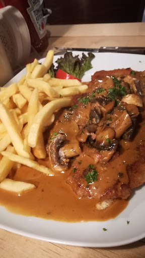 Read moreEssen absolut 5 Sterne! Selten so leckere Hausgemachte Kost gegessen für einen absolut moderaten Preis! Es war gut besucht und mussten doch ein bisschen aufs Essen warten. Das Warten har sich aber gelohnt: Steaks waren auf den Punkt, Schnitzel reichlich, deftige Bratkartoffeln, Soßen mit aller sicherheit selbstgemacht und nicht aus der tüte. Einfach lecker! Service sehr freundlich und kompetent. Man hat sich sehr willkommen gefühlt- Auch da es ein nettes "guten tag" von den Thekengästen gab. Gasthaus haben wir erwartet und Gasthaus haben wir auch bekommen! Einziges Manko: die Stühle im Außenbereich waren doch schon sehr unbequem und klapprig. Für mehrgewichtige nicht so gut, aber Konnte man ja vorher auf den Bildern sehen, und sich dementsprechend einstellen.