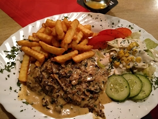 Weiter geht es, Pizza ohne Tomaten bestellt und trotzdem mit bekommen. Das Rumpsteak mit Kroketten war ebenfalls nicht medium wie bestellt sondern durch und die Kroketten waren innen kalt. Vom bestellten Schnitzel ist die Panade direkt abgefallen. Man hat es vom Teller angehoben und die Panade lag auf dem Teller.