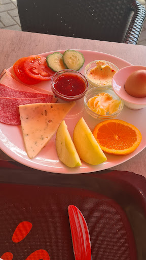 Ich esse ja gern ne saftige Scheibe Gurke auf meinem belegten Brötchen aber nach dem ich schon die ersten beiden völlig ausgetrockneten Gurkenscheiben reklamiert hatte weil man sie wirklich nicht essen konnte bekam ich daraufhin die nächsten beiden trockenen Gurckenscheiben die ebenfalls nicht essbar waren und natürlich liegen geblieben sind. Auch die Tomaten und Orangenscheiben lagen wohl schon seit dem Vorabend im Kühlschrank und blieben ebenfalls liegen. Schade es war nicht so viel los das man das Frühstück hatte nicht frisch zubereiten können.