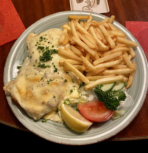 Leider hatte unsere Bedienung einen ganz furchtbaren Tag. Wenn ich ein Spiegelei gut durchgebraten, beziehungsweise von beiden Seiten gebraten haben möchte nimmt man die Bestellung an und kommentiert es nicht.... Und beim servieren sagt man auch nicht "Schnitzel mit dem komischen Ei"...