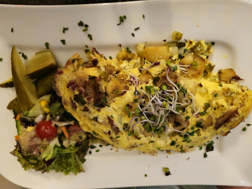 Zum Essen gab es Bauernfrühstück (2+), Schnitzel "Wunderbar" mit Creme- Champignons und Rosmarinkartoffeln (3+,TK), gebratene Hähnchenbrust mit Bärlauch-Frischkäsehaube auf Gemüserisotto (2) und Wildgulasch mit Apfelrotkohl und hausgemachte Spätzle (2).
