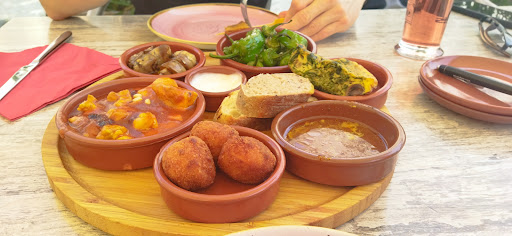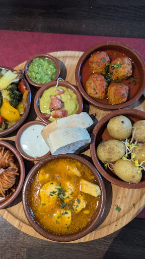 Wir haben auf der Terrasse platzt genommen, man saß gut am Marktplatz unter Sonnenschirmen auf mit Kiss3n gepolsterten Stühlen am Tisch. Da ich mich auf Tapas wie in Spanien eingestellt habe, war ich ein wenig mit der Karte überfordert, denn diese hatte bis auf wenige Ausnahmen nichts mit spanischen Tapas zu tun. Getränke wurden zügig aufgenommen und serviert. Das Essen wurde auch zügig aufgenommen und nach einer längeren Wartezeit, die Koch im Rahmen war, serviert. Das Preis Leistungs Verhältnis ist nicht angemessen und geschmacklich waren die servierten Speisen leider auch kein Hit. Die Servicemitarbeiter waren eher bemüht als fachlich auf der Höhe. Hätte ich mich nicht auf Tapas eingestellt und wären die Preise nicht exorbitant hoch für die gereichten Speisen und der Qualität könnte man durchaus mit viel wohlwollen noch auf drei Sterne erhöhen. Die Gegenbenheiten lassen dies aber nicht zu. Ich würde maximal nochmal für ein gezapftes Estrella (Bier) dort hingehen aber vom Essen lasse ich...