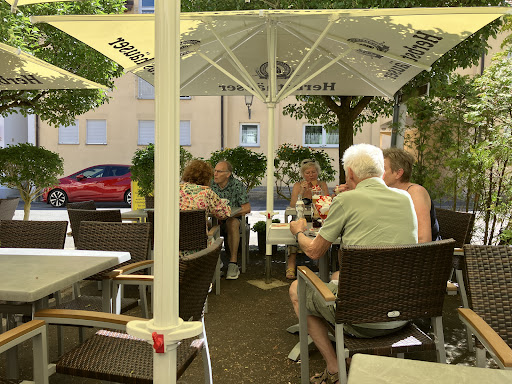 Sat here for hours recently, enjoyed drinks, cakes, ice cream. A large cycling party came in, the place was filled, the staff just got on with things efficiently and handled it. Tasty selection of cakes, tartes, strudel, ice creams, they also did hot food. Brilliant place to sit and watch the world go by, obviously popular...