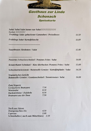 Read moreEinfache Dorfwirtschaft mit einfacher, aber guter Hausmannskost. Genau das hatten wir gesucht. Man will nicht jeden Tag Steak etc.. Wir saßen bei Abendsonne im Garten vor der Wirtschaft. Dieser ist liebevoll dekoriert mit altem Geschirr, Blumen etc.. Die Tomatensuppe war hausgemacht und lecker, das Mettbrot ebenso, der Hackbraten mit Soße und Kroketten etwas versalzen und der Salat alles frisch und nicht aus dem Glas. Im Großen und Ganzen okay und angemessen im Preis. Wir haben uns...