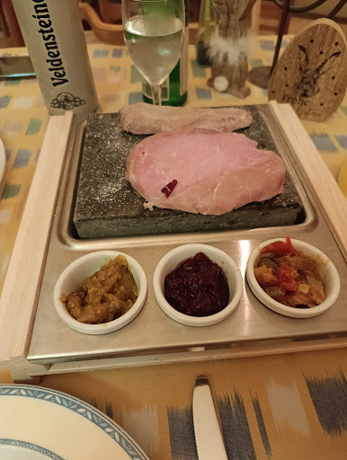 Read moreWir haben das Forsthaus Kamerun nur zufällig gefunden, weil es das einzige geöffnete Restaurant an einem Montag war und wir zu meinem Geburtstag spontan essen gehen wollten. Das Forsthaus liegt mitten im Wald. Die Gaststube war niedlich österlich dekoriert. Die Bedienung empfing uns sehr freundlich. Die Speisekarte besteht zu 90% aus Pizzen und auf einer Sonderkarte 3 Fleischgerichte. Auf der Karte war ein Vermerk, dass z.Zt. kein professioneller Koch vorhanden ist. Wir wählten die Pizza Kamerun und Schweinerücken vom Strohschwein mit 3erlei Soßen und hausgemachten Ciabatta Brot auf heißem Stein für 24,50€ ! Was dann kam hat mich sprachlos gemacht. Es wurden 2 rohe Scheiben Fleisch mit etwas Radicchio gebracht, der heiße Stein und 3 Töpfchen mit (hausgemachten?) Dips gebracht,der heiße Stein und vier Scheiben Ciabatta. Dann gab es von der Bedienung noch eine Instruktion, dass der heiße Stein gesalzen werden muss bevor das Fleisch VON MIR!! gebraten wird. Ich wollte an meinem Geburtstag nicht kochen, daher haben wir ein Restaurant aufgesucht. Also ich finde den Preis unverschämt. Die Köchin hat hier nichts zu tun gehabt. Ob die Dips hausgemacht und das Ciabatta waren, kann ich nicht beurteilen. Sie waren okay und mussten gegessen werden, weil Schwein nun mal sehr trocken ist, egal vom Stroh oder nicht und sonst ja keine Beilagen dabei waren.Keine Empfehlung von mir für dieses Gericht. Preis Leitung inakzeptabel. Die Pizza meines Partners war gut und der Salatteller und das Bruschetta am Nebentisch sahen ansprechend und üppig aus. Ich habe mich sehr über meine Wahl geärgert, aber dadurch ein unvergesslicher Geburtstag. Ich gebe beim Essen 1 Stern...