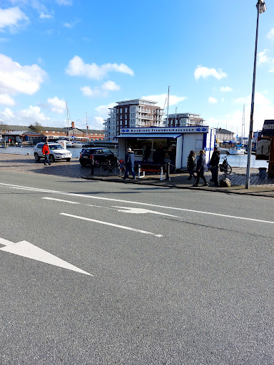 Die Damen in der Fischbude waren seht nett, es kamen viele Gäste und andere Fischbrötchen scheinen sehr gut und günstig zu sein. Getränke sind ebenfalls günstig (Flasche Astra 1,80 Euro). Aus dem Grund kommen da auch Gäste hin, die hier wohl einen Teil ihrer Freizeit verbringen.