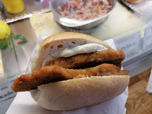 Der Backfisch war schon vorfrittiert und wurde aus einer Box, in der die fertigen Backfische aufbewahrt wurden, herausgeholt und lauwarm aufs Brötchen gelegt. Die Panade war ekelig pappig und das Ganze keine 5,50 Eur wert.