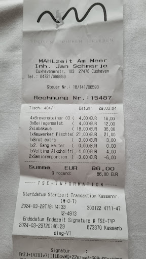 Ergänzend/ Nachtrag vom 08.11.2024: Ja, in Erinnerung der tollen Geschmackserlebnisse haben wir uns erneut auf den Weg gemacht und sind mit dem Wohnmobil zum Fisch essen nach Duhnen ins Restaurant Mahlzeit am Meer, gefahren. Voller Vorfreude haben wir nach Reservierung eines Tisches für zwei, das bekannte Gesicht der netten Bedienung sowie die gastliche und bekannte Einrichtung der Gaststätte, vorgefunden. Die aufmerksame Bedienung war wirklich sehr freundlich und nett. Unsere Bestellung beinhaltete neben der Fischplatte für zwei, eine Flasche Wasser und eine Flasche Chardonnay. Der reservierte Tisch wurde zügig eingedeckt und nach kurzer Wartezeit wurde die Fischplatte sowie die dazu gehörenden Beilagen gebracht. Sehr schnell wurde uns klar, dass unsere Erwartungshaltung nicht erfüllt werden kann. Die Fischplatte bestand nicht wie bekannt aus einer ovalen Platte auf der alles toll angerichtet wurde, sondern aus einem Teller nebst Schüsseln für die Kartoffeln. Ja, was sollen wir sagen. Kurz und knapp und einfach erklärt, wurde alles geschmacklich nach dem üblichen 0815 Abläufen zubereitet. Im Ergebnis mussten wir feststellen das unsere Erwartungen, aus Gründen fehlender Substanz bezüglich der Zubereitungsart und der verwendeten Produkte, überhaupt nicht erfüllt werden konnte. Ja, die Menge an Auswahl an Fisch hat gepasst. Aber die Qualität der unterschiedlichen Produkte und der Zubereitung entspricht nicht dem was wir kannten. Im Resultat war der Fisch trocken und ohne den bekannten Geschmack. Wir haben unsere Enttäuschung der netten Bedienung dann mitgeteilt und auch erklärt. Scheinbar wurde in den letzten Monaten neben dem Koch auch der Anspruch mehrfach geändert. Wirklich schade. Wir werden für diese Qualität, die es überall wo Fisch lieblos zubereitet wird, gibt, jedenfalls nicht wieder kommen. PS: Die nette Bedienung die uns zusicherte das Sie unsere Beschwerde weitergeben wird hat uns dann als Entschädigung einen Espresso und einen...