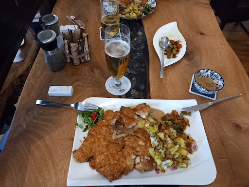 Wir waren gestern auf einem Samstag zu 7 mit Reservierung Abends dort. Das man gerade zu solchen Zeiten nicht erwarten kann innerhalb von 20 Min oder so sein Essen zu haben ist logisch, es war gut los. Allerdings hatten wir nach gut 15 Min alle unser Essen bestellt das war so ca 19.45Uhr. Es waren größtenteils Schnitzel, 1 Steak (dazu später mehr)....Wie gesagt das wir etwas warten mussten war zu erwarten...Das man aber erst um 21.30Uhr-21.45Uhr, ohne mal einen Kommentar zwischendurch ala "tut uns leid wir haben euch nicht vergessen" ist uns mehr als sauer aufgestoßen und wir haben mehrfach gesagt wir eigentlich gehen wollen (da wir alle tierischen Hunger hatten da einige noch arbeiten waren vorher sind wir geblieben). Was aber noch der Knaller war das wir beobachten konnten das nach uns Gäste kamen (2,3 Partien) und die vor uns zu essen hatten. Naja Essen kam. Wir hatten alle Schnitzel, die meisten das XXL mit Wunschbelag, dazu gesagt: Das Schnitzel selbst war nicht wirklich gewürzt, war sehr lasch. Den Wunschbelag entscheidet man selbst da kann man genaugenommen nicht meckern, außer man möchte wie ich eigentlich eine Tomatensoße haben und da anscheinend keine da war wurden einfach Cocktailtomaten halbiert und drauf getan, ehm naja war nicht meins. Positiv dazu ist das man anscheinend alles wünschen kann, hatte Spagetti drauf gewünscht, das wurde gemacht und DIE waren echt lecker.