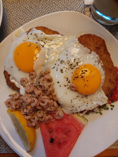 Preis/Leistung stimmt hier nicht so ganz, denn für ein Schnitzel mit Rührei und ein wenig Krabben finde ich knappe 25€ doch recht hoch.
