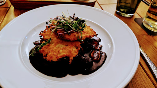 Read moreZiemlich enttäuschend... Hält nicht das, was die sehr kleine Karte und die sportlichen Preise erwarten lassen. Das Ambiente ist nett, aber nichts außergewöhnliches. Brotteller sind eingedeckt, jedoch ohne Messer, sodass man Eines für alle Speisen hat. Die Preise für die Hauptgänge bewegen sich zwischen 20 und 32 €. Durchaus lange Wartezeiten, wäre ok, wenn nicht einiges kalt wäre! Alle Hauptgänge an unserem Tisch waren gleich angerichtet, nämlich in Haufenform... Das Kurzgebratene, Lammrücken und Rinderfilet, war kleingeschnitten und die Gargrade stimmten nicht, alles war viel zu durch und ausgerechnet die vorbereiteten Schmorteile waren kalt! Ein wirkliches No Go allerdings, war der Koriander der auf jedem Teller versteckt war. Lamm, Rinderfilet, Ochsenbäckchen, Fisch etc.... überall war Koriander. Für jemanden der dieses seifige Kraut nicht mag, kann sowas ein ganzes Essen versauen, und das bei dem Preis... Da muss das junge, durchaus freundliche Team noch etwas mehr...