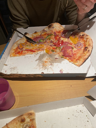 Read moreMit Restaurant hat das nichts mehr zu tun. Das ist ein Pizza- Schnellimbiss mit vollkommen überzogenen Preisen. Bestellung und Bezahlung am Tresen. Mit EC keine Zahlung möglich. Getränke holt man sich selbst aus dem Kühlschrank. Besteck und Serviette wie in einer Kantine aus so nem Blechbottich. Geschirr muss man selbst wegräumen. Die Pizzen sind nur hauchdünn belegt. Champions, Käse und Schinken in 1mm scheiben. 3-4 cm vom Rand gar kein Belag und Knochentrocken. Wenn man für eine Calzone oder Stagnioni 13,50 Euro bezahlt, sollte man gesättig sein. Eine 2. Pizza hätte locker noch reingepasst um satt zu werden. Das Ambiente ist einer Kantine gleichzusetzen. Geschmacklich geht es auch besser. Aber was will man von einem italienischen Imbiss erwarten. Das war definitiv das letzte Mal, dass wir da etwas...