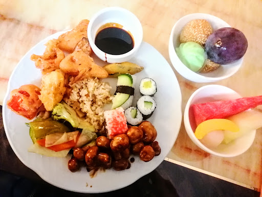 Das Buffet bietet Auswahl, aber eher für Fleisch- und Fast food Esser. Sehr viel paniert, wenig Gemüse Auswahl, wie ich das aus anderen Buffet Restaurants kenne.