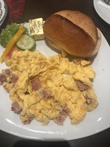 Da startet man gleich gut in den Tag mit unfreundlichem Personal. Kollegin hinterm Tresen ist wohl mit dem falschen Fuß aufgestanden. Die Bedienung, die an den Tisch kam wohl auch.Man hat das Gefühl, dass man aufpassen muss, dass man von der Bedienung nicht gebissen wird. Unfreundlich, unflexibel …eine dritte Tasse für ein Frühstück für 24,90€ war nicht möglich…, musste dann noch ein Getränk zusätzlich bestellen. Wir waren zu dritt…fünf Brötchen, Wurst,Käse, Marmelade, Honig, Rührei. Qualität ok, aber nicht herausragend. Wenn man so nett in den Tag startet, hat man garantiert keine Lust wiederzukommen. …am Ende gab es allerdings noch eine ältere ganz nette Kollegin, die ein bisschen etwas wieder gut...