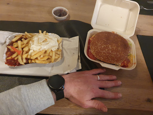 Read moreHallo, leider kann ich nicht positives berichten. Nach der Begrüßung am Samstagabend kam leider kein Feedback. Aber egal. Hinter der Theke waren 4 junge Leute. Da ich ca. 8 Minuten gewartet habe konnte ich das Treiben des Personals beobachten. Alle sehr gestresst. Das Fleisch der Hamburger wurde ohne Handschuhe angefasst und zusammengelegt. Anschließend aus einer Ketchupflasche Soße drüber gespritzt. Ich persönlich halte das für unhygienisch und wenig ansprechend. Ohne das ich überhaupt nach meinen Wünschen gefragt wurde, noch sonst irgendeine Reaktion des Personals erfolgte, habe ich nach ca. 8 Minuten Wartezeit an der Theke, die Pommesbude unverrichteter Dinge hungrig verlassen. Leider kann ich so noch nicht mal beurteilen, ob es überhaupt geschmeckt...