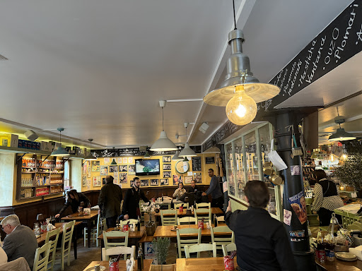 Read moreWe had a reservation. The location is okay a little tricky to find if you don't know the place at all but very visible. We went at 7.30pm and we found parking in the neighborhood pretty easily. You go in and it like you traveled to Greece to your local favorite Tavernaki ( Greek small cozy restaurant). Greek music playing I like the Greek old cinema movies playing on the tvs (no volume of course). It's spacious, big tables comfortable chairs. One small problem for me was that the wooden tables had a stripe of wood horizontal across directly under the main piece of wood of the table making it a bit hard to fit your feet in a 90 degree angle but you work around it fine. The service stuff was amazing, friendly and funny but not funny in a rude/uncomfortable way. We felt very welcome and as if we were regulars there. Good drinks (white wine, tsipouro and retsina), the food was amazing (we got the Ola & Ola plate salat, Dakos salat 😍, Haloumi, Pommes, pita bread of course with garlic 👌🏽, Politiko souvlaki and lamp paidaki). Good flavors, very good ingredients, good combos. And at the end we also got some desserts (very tasty) after drinking...