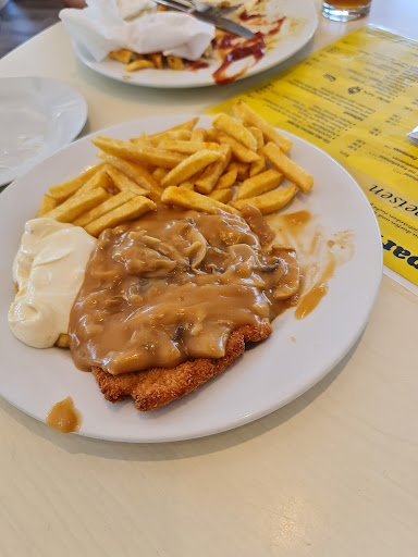 Leider durfte ich heute nur schlechte Erfahrungen in dem Lokal machen. Ich habe dort mit meiner Mutter und meinem 1 Jährigen Sohn zu Mittag gegessen. Leider war die Pommes, die ich bestellt hatte, versalzen und das Schnitzel schmeckte verbrannt. Das Essen wurde kommentarlos zurück genommen und ein neues Essen gebracht. Diesmal war die Jägersoße leider komplett kalt (Kühlschrank Temperatur) und dementsprechend auch dickflüssig, daher bestellte ich stattdessen im 3. Versuch Currywurst Pommes. Dieses Essen war dann in Ordnung. Bei der Abrechnung wurde einmal Schnitzel Pommes mit berechnet und dies OHNE! vorherige Ankündigung o.ä. Dies ist mir erst beim Überschlagen des Betrags aufgefallen da mir KEINE Rechnung ausgehändigt wurde. Auf Nachfrage hin sagte die Servicekraft dass dies eine Anweisung aus der Küche sei, da das Essen zwei Mal reklamiert wurde und nun ein Gericht von mir übernommen werden müsse. Vollkommen unverständlich warum ich eines der reklamieren Gerichte auch noch bezahlen musste. Die Servicekraft machte klar dass sie nicht Zuständig sei und aus der Küche zeigte sich keine Präsenz. Wirklich sehr traurig. Service und Essen hätten 0 Sterne verdient.. 36€ für zwei Mal Currywurst Pommes und zwei kleine Spezi und die Kundenfreundlichkeit die nicht...