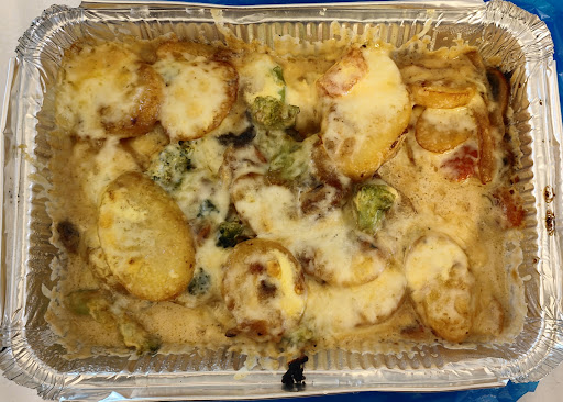 Read moreAlso wenn das der "Gemüse Auflauf" sein soll, möchte ich den Kartoffel Auflauf nicht sehen. Laut Karte ist der Inhalt der beiden Aufläufe fast identisch, nur das im Gemüse Auflauf (dachte ich) mehr Gemüse enthalten ist als im Kartoffel Auflauf. In meinem Gemüse Auflauf jedoch, waren ca. 95% Kartoffeln. Wie sieht dann bitte der Kartoffel Auflauf aus (wo laut Karte auch Brokkoli und Zwiebeln drin sind)? Komisch komisch... Geschmacklich kein Highlight, aber essbar und okay. Mit 9 Euro aber auch nicht wirklich günstig. Fazit: Gemüse Auflauf lohnt sich definitiv nicht.