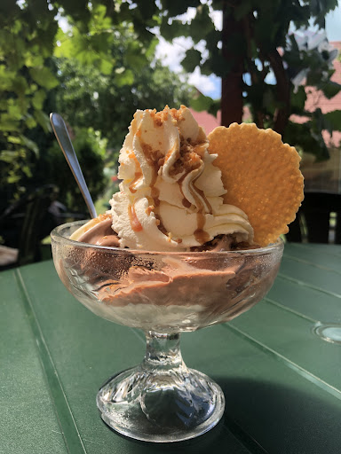 Read moreEin etwas versteckt liegendes kleines Eiskaffee. Wir sind durch Zufall auf einer Radtour vorbeigekommen. Es gibt wechselnde Angebote von Softeis. Alle Eisbecher sind sehr lecker und reichlich. Uns hat es am meisten der „Eismohr“ angetan, Vanilleeis mit einem Schokomantel in der Waffel. Unter der Pergola die mit Weinreben berankt ist kann man sehr gut sitzen. Man kann gefrostete Eis kaufen und auch Eistorten bestellen. Täglich gibt es frischen hausgebackenen Kuchen, also immer einen Besuch wert. Das Kaffee ist von März bis...