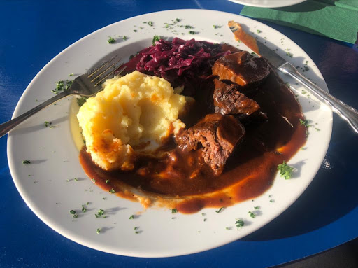 Update2022: Erster Wermutstropfen - Wildburger sind nicht verfügbar. Als Ersatz musste ein Schweineschnitzel herhalten. Deutliche Steigerung in Service und Qualität. Das Essen war schnell serviert und lecker. Der Kuchen war ebenfalls sehr gut. Mein Eis mit heißen Himbeeren ein Klassiker, aber gut und lecker. Die Cola deutlich über dem Eichstrich und sehr gut gekühlt. So macht Essen im Urlaub Spaß. Wir hoffen mal, dass dieses Niveau dauerhaft gehalten wird. Und beim nächsten Mal gibt es vielleicht auch...