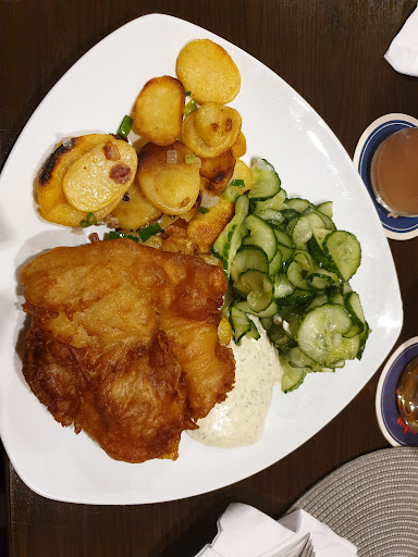 Etwas außerhalb der "Fressmeile" gelegen, ist die Fischbratküche ruhig am Waldrand gelegen. Die Karte ist übersichtlich, bietet aber genug Abwechslung. Ich habe mir ganz klassisch den Backfisch bestellt, meine Freundin hatte ein Zanderfilet. Der Backfisch war schön kross, das Zanderfilet perfekt gebraten und beide Gerichte schmeckten auch entsprechend lecker. Auf den Gurkensalat wollte ich erst verzichten, für mich ist Gurke nur schnittfestes Wasser, aber das wäre ein großer Fehler gewesen! Das Dressing ist richtig würzig-lecker, der Salat war eine kleine Geschmacksexplosion, großes Lob dafür! Die Bratkartoffeln waren zwar ordentlich gebraten und mit Lauch und Speck abgeschmeckt, aber leider wohl aus der Tüte. Irgendwie muss man schließlich einen Kompromiss aus Preis und Qualität finden. Dass der Fisch da an erster Stelle steht, ist für mich völlig in Ordnung. Der Service war im Übrigen auch sehr gut, der Chef hat sich sichtlich über unsere leeren Teller gefreut und die Bedienung war super nett und charmant. Wer auf Schickimicki verzichten kann und in entspannter Atmosphäre guten Fisch essen will, ist in der Fischbratküche ...