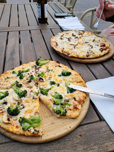 Die Gyros Pizza naja man nenne es eher viel Teig mit ein paar Streifen Fleisch schmeckte nicht.
