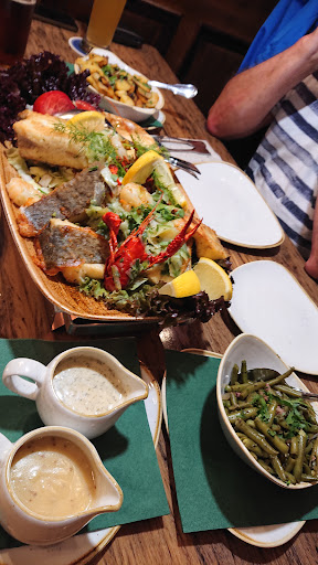 Read moreGemütliches, gut besuchtes Restaurant direkt am Hafen in Wustrow. Ich war heute das erste Mal dort essen und es wird sicherlich nicht das letzte Mal gewesen sein. Die Preise sind angemessen. Der Service war authentisch, sehr freundlich und zuvorkommend. Ich kam allein und fühlte mich zu keiner Zeit irgendwie unwohl. In der ansprechend gestalteten Speisekarte lässt sich während kurzer Wartezeit aufs Essen gut schmökern. Es wird damit geworben, das bei den zubereiteten Speisen weitestgehend auf Fertigprodukte verzichtet wird und der überwiegende Teil komplett aus eigener Herstellung ist. Mir persönlich ist das sehr wichtig, da ich ansonsten lieber aufs Essengehen verzichte und selbst mit Leidenschaft gern koche. 1A Qualität. Gut gewürzt. Die Auswahl der Speisen ist ebenfalls toll. Die Portionsgröße ausreichend. Für Vegetarier ist auch etwas zu finden. Für Kinder ebenso. Ich habe ein Fischgericht gewählt. Eine Art Fish and Chips mit drei verschiedenen Dips, die ich so noch nie probiert habe. Der Bierteig um den Seelacks war kross und schmackhaft. Alles einfach köstlich. Im Ganzen war es ein schöner Abend in diesem tollen Restaurant. Von mir gibts die volle Punktzahl und absolute Weiterempfehlung. Ich komme nächstes Jahr wieder und freue mich...