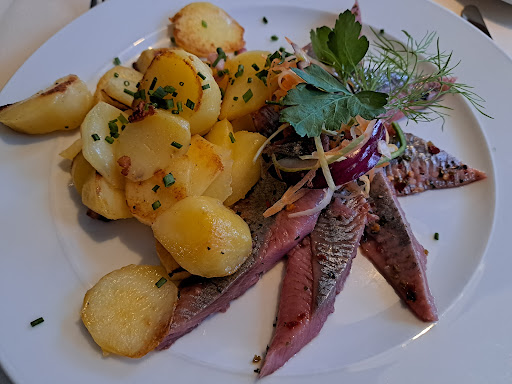 Read moreSchon beim Betreten des Restaurants fand die Bedienung es wichtiger länger zusammen zu plauschen als mir in dem doch sehr leeren Restaurant einen Tisch zuzuweisen (wie es ihre Coronaregeln draußen klein geschrieben besagen). Aber man ist ja geduldig. Meine Mutter war schon vorgegangen und hatte den Zettel übersehen und setzte sich direkt am Eingang ohne Zuweisung hin. Als ich nachkam und wie oben beschrieben endlich zu ihr gehen konnte, kam von der selben Kellnerin ein arrogant und schnippisch herablassender Spruch laut durch den ganzen Raum, dass meine Mum die Coronaregel wohl nicht verstanden hätte. Die paar Gäste gucken natürlich und meine Mutter hat sich richtig schlecht gefühlt. Dabei war es einfach nur ein Versehen. Natürlich habe ich sofort meine Mum geschnappt und habe diesen Schuppen verlassen. Zum Essen kann ich daher nicht viel sagen. Allerdings waren alle Restaurants in der Nähe voll und dort fast alle...