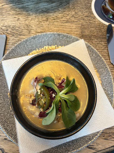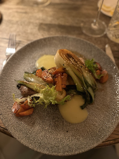 Unsere Wahl fiel auf das Welsfilet sowie den Dorsch – und beide Gerichte überzeugten auf ganzer Linie. Besonders das auf Lavastein gegrillte Welsfilet mit Sesambutter, Pak Choi, Karotten und Mango-Bulgur war eine durchdachte Komposition: aromatisch, präzise gegart und in der Balance von Texturen und Aromen bemerkenswert gelungen. Hier zeigt sich echte Kochkunst ohne Effekthascherei – jedes Element auf dem Teller hatte seinen Platz und seine Berechtigung.