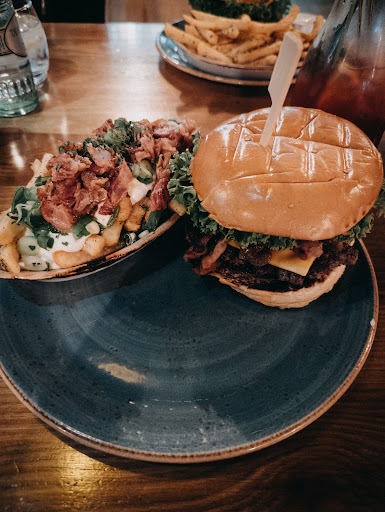 Read moreNach einem sehr schönen Tag in Darmstadt sind wir ins Jamy‘s um den Abend perfekt ausklingen zu lassen. Trotzdessen alle Tische bereits reserviert waren, haben wir zeitlich begrenzt einen Platz bekommen. Durch die schöne Dekoration, die grünen Deckenelemente und das gedämpfte Licht wird eine traumhafte Kulisse und Atmosphäre geschaffen. Die Bedienungen waren zwar sehr freundlich, ließen aber, da sehr viel los war, immer etwas auf sich warten. Zu Beginn wurde sich erstmals um unsere Getränke gekümmert. Die hausgemachten Limonaden und Eistee sind allesamt eine glasklare Empfehlung. Geschmacklich hab ich noch nie solch gute getrunken. Sie waren nicht nur ein Hingucker, sondern auch sehr angenehm süß. Mein Cocktail (Himalaya) war sehr mild-sahnig und mit einem ordentlichen Schuss Alkohol, also schonmal alles richtig gemacht. Das Geschirr und Besteck sah sehr edel aus und lag gut und schwer in der Hand. Die Burger und Fries wurden auf einem Teller sowie einem kleinen Fries-Schiffchen an den Tisch gebracht. Der Burger (Smoke Attack) war mehr als nur sehr gut und für mich eine reine Geschmacksexplosion. Das Brioche-Bun war sehr fluffig, das Fleisch perfekt gewürzt und getoppt mit leckerem Käse, die perfekte Menge an karamellisierten Zwiebeln, der Bacon superkross und zum Schluss noch die perfekte Menge an BBQ-Soße mit dem perfekten Geschmack. Alles in allem war der Burger geschmacklich mehr als perfekt und hat mich komplett abgeholt. Das war bis jetzt definitiv der beste Burger den ich je gegessen habe! Die Sour Bacon Fries waren durch die Sour Cream, die Frühlingszwiebeln und den Bacon geschmacklich ebenfalls mehr als gelungen. Die Sour Cream hatte die perfekte Konsistenz und war sehr cremig. Der Bacon war schön klein geschnitten und sehr kross. Richtig lecker! Die Truffle Parmesano Fries wurden mit einer sehr schmackhaften und zu empfehlenden Trüffel Mayo getoppt. Obwohl wir sehr entspannt und langsam gegessen haben, sind wir noch mehr als pünktlich gegangen und haben den Tisch wieder für die Reservierung freigemacht. Durch das sehr gute Essen und Trinken lässt sich definitiv das Manko der sehr schlechten Musikauswahl ausgleichen. Zum Schluss lässt sich nur sagen, dass ich definitiv wiederkommen möchte und ich hier geschmacklich mehr aus zufriedengestellt wurde. Das Jamy‘s ist nur...