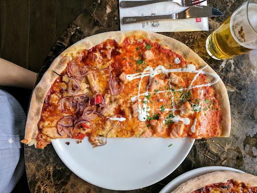 Read more1 star mainly cause the pizza was delicious, that’s the only good thing I have to say about this place. Other then that the service was a complete joke. Upon walking in the hostess or server girl was on her phone the whole time, we asked her if we can sit and she seemed like she was completely annoyed. After sitting the waitress took forever with the drinks, forever with the order. She was rude, seemed annoyed and walked away to give us “time” to order. This time felt like a good 20 minutes. I asked her about the mushrooms for the pizza, she was confused. Me and my boyfriend ordered vegan pizzas, I asked to add the mushrooms and she was more confused and refused to do it, thank god. Mushrooms €1.50, seriously? The food took forever to come, and the waitress forgot to add the vegan cheese to my boyfriends dish. The obnoxious waiter made comments referring to the vegan cheese talking down to him and insulting him. The pizza on the plate was also very weird, the plate was too small and the pizza was falling onto the table, that’s gross. It was almost impossible to eat it. This place sucks, the people here are rude, horrible place. Never ever...