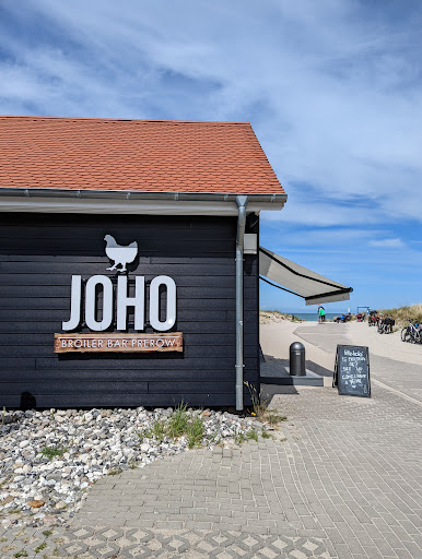 Read moreNach einer langen Wanderung sind wir freitagabends in der JOHO Broiler Bar in Prerow "gestrandet". Da wir keinen Tisch reserviert hatten, mussten wir einige Minuten vor dem Außenbereich des Restaurants warten, was aber überhaupt kein Problem für uns war. Die direkte Strandlage, das Ambiente der Bar und die Teller, die ihren Weg an die Tische der Gäste fanden, ließen die Vorfreunde nur weiter steigen. Nachdem wir auf zwei Loungesesseln zwischengeparkt wurden und schon einen Blick in die Karte werfen konnten, wurde uns ein Tisch zugewiesen. Dieser wurde nach dem Aufbrechen der vorherigen Gäste ordnungsgemäß desinfiziert. Von unserem zentralen Platz hatten wir einen guten Überblick über das ganzen Geschehen auf der Terrasse. Für unsere ausgewählten Vorspeisen und Hauptgerichte würden wir schon 5 Sterne vergeben. Das Servicepersonal hätte allerdings 10 Sterne verdient. Wir gehen gerne, regelmäßig und ab und an auch "exklusiv" Essen aber solch einen tollen Service haben wir noch nie erlebt. Den beiden Hauptservicekräften ihre Freunde bei der Arbeit anzusehen und mitzuerleben hat einfach nur Spass gemacht. An dem einem Tisch dem Hund (nach Nachfrage) ein paar Leckerlis gegeben, diverse Tischumzugswünsche aufgrund von einsetzendem Nieselregen souverän und freundlich abgewickelt, einen zu viel gemachten Aperitif nett unters Volk gebracht, kurzer Smalltalk mit vielen Gästen und den "Endgegner" (eine forsch auftretenden, 8-köpfige Frauentruppe) trotz Tischannexion charmant willkommen geheißen und bedient. Grandios und beim nächsten Aufenthalt auf dem Darß sicher wieder eine unserer kulinarischen...