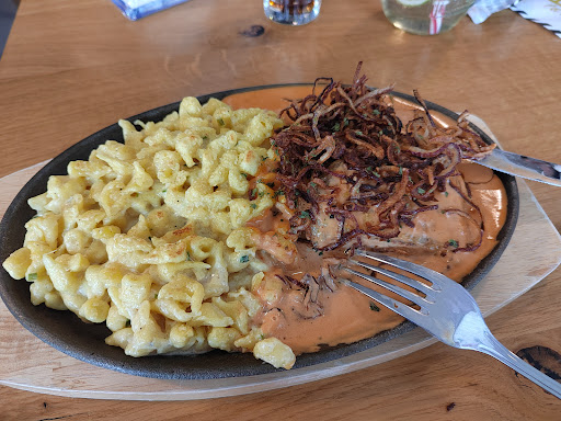 Ich war zu Besuch bei einem Freund und wir sind im Café Auszeit Mittagessen gegangen. Er selbst ist sehr begeistert von dem Café, sagt aber selbst, und das habe ich auch festgestellt, dass die Wartezeiten durchaus länger sein können. Bis wir bestellen konnten verging einiges an Zeit. Da das Café aber an einem besonderen Ort ist und sich die Mitarbeiter mit den Gästen desofteren bekannt sind, entstehen da natürlich öfter Gespräche, die dann das Tagesgeschäft etwas verzögern. Die meisten Gäste haben nüchtern und wertfrei gesagt halt auch einfach die Zeit. Die Preise finde ich verhältnismäßig happig, das Ambiente ist jedoch sehr schön und friedlich, sonnig und schattig kann man sitzen draußen, drin war ich leider nicht. Die Bedienung hat mich zwar angehört, mich aber nicht wirklich angesehen 😅 da habe ich mich etwas eschauffiert. 😂 Zu meiner Begleitung war sie allerdings äußerst freundlich und hat Späße gemacht, daher nehme ich das ganze nicht so persönlich 😁 Wieder kommen würde ich halt nur, wenn ich vor Ort nochmal jemanden besuche. Trotzdem, wie gesagt, das Essen war...
