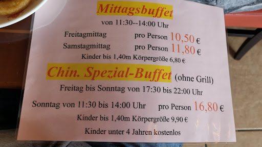 ABER: ein 3ter Stern wäre es noch geworden wenn die Mitarbeiter freundlich und nett gewesen wären, dies war aber leider nicht der Fall. Gesichter haben nicht den Eindruck gemacht als würden sie gerne arbeiten. Das Wechselgeld bei Bezahlung flog mir mehr oder weniger ins Gesicht. Müsste aber nicht sein. ... .. ZUM ESSEN: wir wollten mal wissen ob dieser Chines besser ist als unser Ortsansässiges Lokal. Leider durchgefallen. Essen eher mit wenig Geschmack, Suppe hat geschmeckt. Nachtisch war auch gut. Hauptgerichte Leider nicht, wenig Geschmack, Fleisch zäh ( auch das vom Grill...) Der Herr vom Grill konnte nicht höflich sprechen. Es war eher ein Einheitsbrei an Gerichten. Die alle ähnlich schmeckten...das Fazit hierzu ist das essen war weder richtig gut noch richtig schlecht.