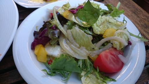 Gut alles nicht so wild. Beim Bestellen wurde auch endlich nach Getränken gefragt. Meine Frau bestellte sich einen Gyrosteller mit Metaxasoße und Reis, ich habe mir einen Gyrosteller mit Kalamari und Tomatenreis bestellt. !Zaziki musste extra gekauft werden! Zum Essen: Ölig, fettig und schwer. Also kaum genießbar und Sodbrennen ist vorprogrammiert. Das Gyros wieß Knorpel auf. Und es waren auch rosa, fast rohe Gyrosstücke auf dem Teller meiner Frau (die ja schwanger ist...) Die Metaxasoße war extrem sahnig, sodass man nach ein paar Bissen bereits über war. Die Kalamari waren in Ordnung, der Tomatenreiß auch. Die Portionen waren für den Preis ehrlich gesagt zudem kaum befriedigend. Aber gut, man konnte ja eh kaum mehr als die Hälfte essen, bei der schweren Kost...