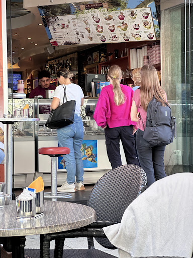 Selbstbedienung, das wär ja noch nicht schlimm gewesen, 2. Die Karte hängt an der Decke, 3. Man kriegt das Eis in Plastikbechern mit Holzlöffeln. Fühlt sich an wie diese Holzstäbchen beim Arzt 🙀 4. Die Becher sind viel zu klein. Das Eis rinnt und rinnt und rinnt überall runter, schon bevor man den wunderschönen Becher überhaupt auf den Tisch bekommt. Wirklich eklig. Wenn man dann wenigstens Servietten hätte, mit denen man den Saustall wegputzen könnte. Aber weit gefehlt. Und das Eis rinnt schön weiter. Und zu guter Letzt 5. Ich wollte dann mal auf die Toilette zum Händewaschen, weil ich natürlich überall festgeklebt bin, da hätte man dann noch Geld reinwerfen sollen, damit die Tür überhaupt aufgeht. Dann hats mir endgültig gereicht. NIE WIEDER! Dabei war das immer so eine schöne Eisdiele. Ach, da hätt ich ja fast 7. vergessen. Jedes Mal, wenn der Kellner vorbeiging, ist ihm irgendwas runtergefallen. Wir mussten zum Schluß schon lachen, wenns nicht eigentlich zum Weinen...