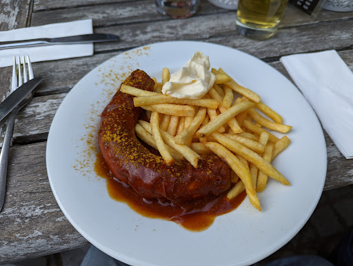 Read moreThis is a great find, love the outdoor seats. Portions were large but not too large, the Currywurst was amazing and the Panna Cotta sublime. Almost everything on the menu was available in children's portions we loved the rigatoni Bolognese. Quite cheap for what we got. Good beer selection.