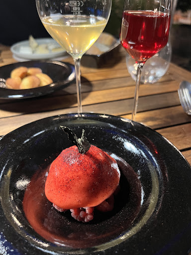 Read moreDas Essen, der Service und das Ambiente in den beiden Haupträumen, sowie die Auswahl an Weinen verdienen bestimmt 5 Sterne. Und hätte man uns nicht im Kuhstall Platz nehmen lassen, wäre meine Bewertung auch viel höher ausgefallen. Beim Betreten des Lokals, kommt man in die "guten Räume" um sich anzumelden. Danach würden wir wieder zurück Richtung Ausgang und weiter durch weitere Räume zu unserem Tisch begleitet. So saßen wir dann in einem ehemaligen Kuhstall mit abfallenden Böden, unbequemen Stühlen, dementsprechend schrägen Tischen. Es war sehr ungemütlich. Die Bedienung war sehr nett und das Essen war sehr lecker. Ein echt gutes Niveau, das man uns seitens Küche und Service bot. Wie hatten je eine Vorspeise und einen Hauptgang. Zusätzlich gab es vorweg was zum Aperitif und einen "Gruß aus der Küche". Wir tranken je ein Glas Wein zum Essen. Zum Abschluss nahm ich mir noch ein kleines Dessert und bestellte uns zwei Tassen Kaffee, die wir allerdings nicht bezahlen mussten, da er etwas misslungen war. Wir werden das Lokal vermutlich nicht mehr besuchen, aber wenn jemand mal hin möchte, weil man dort ausschließlich mit Bio-Produkten verköstigt wird, der sollte bei der Reservierung darauf bestehen, nicht im Kuhstall zu sitzen. Wir würden uns darauf hingewiesen, dass wir im "Kuhstall" sitzen, hätten aber nie im Leben mit einer solchen Location gerechnet. Zu erwähnen wäre noch, dass man sich etwas Zeit nehmen sollte, wenn man mal auf Klo muss. Der Weg führt durch alle Räume, auch die Guten, an der Küchen vorbei, durch den Bio-Laden(ja, den gibt's hier auch) in den recht lieblos und billig anmutenden Toilettenbereich. Mal ne Handcreme, Hygieneartikel, Seifenspender, etc. wie es einem fast überall geboten wird, waren ne Option. Wir waren auf Anraten des "Pfälzer Restaurantführers" in Ruppertsberg. Leider gab es hier im Vorfeld keinen...
