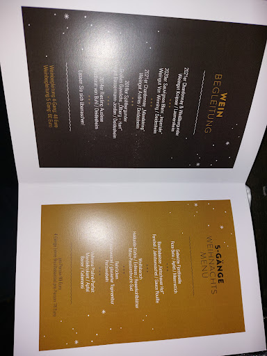Read moreEssen sehr sehr gut. Der Kellner weiß nicht ob Wildfangfisch oder nicht, kann den Unterschied zwischen Wolfsbarsch und Island Rotbarsch nicht erklären. Allerdings kennt er genau zwei Weine die er an jedem Tisch empfiehlt einmal den Riesling und einmal den Rotwein von Markus Schneider. Den Unterschied zwischen den beiden Sektsorten konnte er und die Dame auch nicht erklären. Schade Wartezeit extrem lange!!!! Auf die Vorspeise haben wir eine Stunde gewartet auf den Hauptgang ca 40 Minuten Der Service war überfordert, das Brot kam zum Ende der Vorspeise, wir hätten gerne noch etwas getrunken allerdings kam die Bedienung nicht. Ein junger Mann machte saloppe Sprüche das war’s. Wir wollten eigentlich unsere Weihnachtsfeier mit 23 Personen dort machen und sind uns nicht mehr sicher wegen den überforderten Mitarbeitern. Wegen dem Essen haben wir keine Zweifel. Tolle Karte...