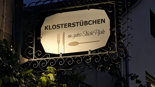 Wir waren heute zu fünft dort zum Mittagessen - Meine Eltern, meine zwei Kinder von 3 und 6 Jahren und ich. In der gemütlichen Stube fanden wir einen schönen Tisch und wurden von der freundlichen Bedienung wärmstens empfangen. Der Wein - ein absolutes Gedicht! Die Traubenschorle für die Kinder kam auch wunderbar an. Nachdem das Essen bestellt war, wurde Schmalzbrot gereicht, bei dem wir alle 5 gut zugelangt haben. Als das Besteck gebracht wurde, war zu unserer freudigen Überraschung sogar extra Kinderbesteck dabei. Nach dem leckeren und bunten Salat wurden die Kinderschnitzel als erstes gebracht. Meiner Meinung nach ein wichtiges Kriterium, dass Kinder als erstes dran kommen. Top! Unsere Wahl - Rumpsteak, Schweinepfeffer und Putensteak - war jeweils ein Gaumenschmaus, liebevoll angerichtet und einfach spitze. Zunächst dachte ich, ich müsse mir den Nachtisch verkneifen, weil ich laktoseintolerant bin und meine Tabletten nicht dabei hatte. Die freundliche Bedienung war allerdings gewappnet, hatte welche da und so konnte ich mir auch ein Vanilleeis mit heißen Himbeeren schmecken lassen. Gegen Ende bekamen meine Jungs noch Gummibärchen überreicht. Fazit: Im Klosterstübchen ist man herzlich Willkommen, bekommt wunderbares Essen und ausgezeichneten Wein. Jederzeit wieder, wenn wir in der...