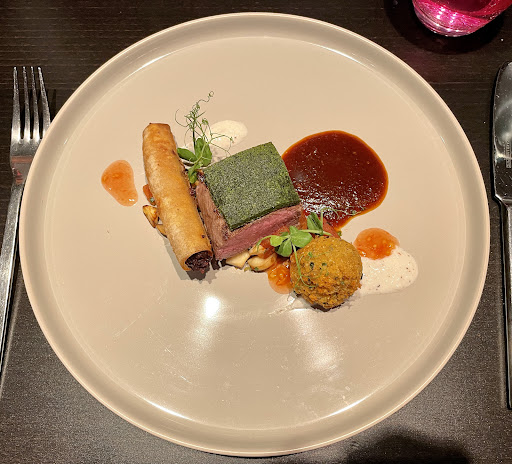 Read moreSo lecker habe ich in meinen Leben noch nie gegessen ! Das 8-Gänge Menue bestand inkl. Minibrötchen und dem Gruß aus der Küche ja sogar aus 10 Teilen und enthielt Köstlichkeiten weit jenseits des vorher nur denkbar Möglichen. Jeder Gang hat uns erneut überrascht und fasziniert in der Kombination der erlesenen Zutaten. Ob Fleisch oder Fisch oder Vegetarisch, jedes Gericht war ein unglaublich gut gewürzter Gaumenschmaus sondergleichen. Optisch perfekt dekoriert. Zu viert haben wir hier einen äußerst gelungenen Abend verbracht. Einmal im Jahr oder wenigstens einmal im Leben sollte man hier gegessen haben! Hinterher kam der sympatische, einzige Koch sogar zum Tisch und stellte sich vor! Dabei hatten wir drei bis fünf Köche in der Küche vermutet - allein eine unglaubliche Leistung! Vielen Dank - wir kommen garantiert wieder und...