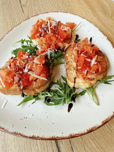 Read moreÜber eine Stufe erreicht man den Eingang. In Italienischer Ambiente hat man die Möglichkeit, dass Essen zum Mitnehmen oder auch vor Ort zu Speisen. Der Eingang hat einen breiten Empfangsbereich. Auf der linken Seite die Möglichkeit die Bestellung aufzugeben, an der Kasse zu bezahlen und das Essen dann auch mitzunehmen. An der Wand links stehen Kühlschränke mit den Getränken, auf der rechten Seite Sitzgelegenheiten. Eine Vespa (Roller) zur Deko. (Erinnert an den Disneyfilm: Luca) Nachdem man uns zu unseren reservierten Tisch geleitet hatte, hatten wir die Speisekarte in Visier. Die Preise akzeptabel bestellten wir unser Essen. Auf unsere Wünsche mit Extras Beläge ist die Mitarbeiterin mit Sympathie und guter Laune ran gegangen. Allgemein war das Warten auf das Essen nicht lang. Das Essen mit frischen Zutaten zugebreitet hatte jeden von uns lecker geschmeckt. Es kam vor, dass nachdem unser Essen auf dem Tisch stand, weitere Bestellungen verzögert gebracht wurden. Da an dem Tag nur eine Mitarbeiterin die Tische bediente, war es ok. :)