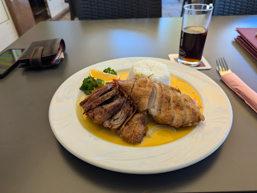 Wir waren heute mit einer Geburtstagsrunde von ca. 12 Personen (inkl. 2 Kleinkinder) dort essen. Davon abgesehen dass wir 1,5 Stunden auf das Essen warten mussten, bekamen die Kids ihr Essen fast zum Schluss. Das geht gar nicht! Auch war das Personal entweder sehr unaufmerksam oder sehr ausgelastet. Wir saßen vor leeren Gläsern. Das kenne ich so gar nicht. Auch wurde uns der Mopp gereicht, als wir sagten, dass wir versehentlich etwas verschüttet haben. Service? Fehlanzeige. Dann war die knusprige Ente - vielleicht aufgrund der langen Wartezeit - alles andere als knusprig. Zäh war sie auch noch. Hinzu kommt noch das weniger einladende Ambiente - mit zusammengerückten Minitischen auch eher ungeeignet für eine Geburtstagsgesellschaft. Da wir mit einem Rollifahrer unterwegs waren, mussten wir im unteren Restaurant-Bereich Platz nehmen. Wie die obere Etage aussieht, entzieht sich meiner Kenntnis.