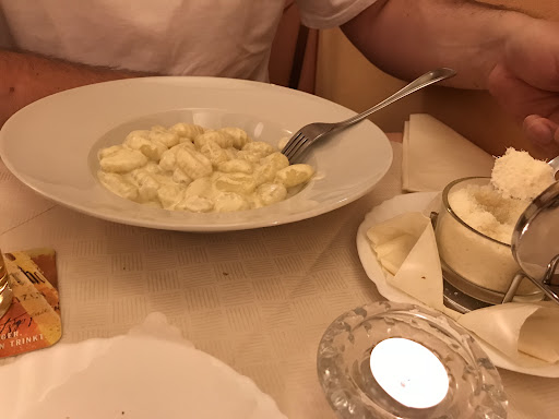 Read moreDas Essen ist recht schmackhaft. Echtes Italien lässt sich hier aber häufig vermissen. Die Gerichte sind sehr eingedeutscht. Das fängt bei der Sahne- "Carbonara" an und hört bei den Beilagen zu Fisch- und Fleischgerichten auf. Tiefkühlmischgemüse und Fertigkroketten haben weder was mit gehobener Küche noch mit Italien zu tun. Da wäre ein Gratin oder Rosmarinkartoffeln usw. die weitaus bessere, weil authentischere Wahl. Der Service und die Freundlichkeit sind allerdings erstklassig! Selbst an die Kinder wird gedacht. Schade, dass es im Restaurant selbst sehr eng ist. Das kann durchaus original italienisches Ambiente bringen, wenn sich der Kellner aber mehrfach am Stuhl des Gastes vorbei drücken muss, oder die hintersten Plätze nicht erreicht, dann ist das leider zu viel des Guten. Insgesamt täte dem Restaurant sicherlich etwas mehr Italien auf der Speisekarte gut, dafür kann es auch ruhig etwas...