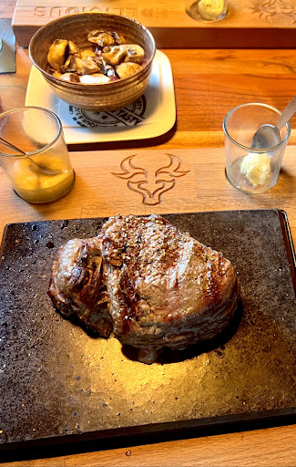 Read moreWir waren jetzt das fünfte Mal in diesem wirklich schönen Restaurant. Das angebotene Fleisch ist einfach sagenhaft! Allerdings würden wir uns darüber freuen, wenn das Fleisch auf dem heißen Stein nicht vorab bereits in Butter angebraten sein würde, sondern ohne weitere Zutaten angebraten wird. Der Service ist höflich und macht was er soll: Bedienen. Ich würde mir jedoch sehr wünschen, dass bei dem doch hohem Niveau, welches angeboten wird, vielleicht etwas mehr Schulung der Mitarbeiter erfolgen könnte. Ein Mitarbeiter könnte z.B. am Getränkeumsatz beteiligt werden ;-), dann würde er/sie vielleicht etwas mehr Augenmerk auf leere Gläser haben. Wir mussten häufig nach dem Kellner Ausschau halten. Wir haben uns dennoch sehr wohl gefühlt, obwohl das Essen leider verspätet kam. Der Kellner hat sich hierfür jedoch auch in aller Form entschuldigt und immerhin sind wir alle Menschen und Menschen machen Fehler. Dass man aber fürs Warten nicht angemessen entschädigt wird, dies erst auf Hinweis bekommt, ist nicht umsatzfördernd.