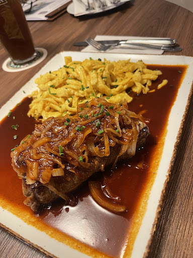 Read moreLeider hat die Qualität in der Küche und auch im Service stark abgenommen. Es war am Sonntagabend nicht all zu viel los (ca. 5 Tische). Bier kam "abgestanden" ohne Schaumkrone, auch an den Nachbartischen. Nachdem der Nachbartisch Essen bekommen hatte obwohl er nach uns bestellt hatte, wurde "aufgeregt" bei uns nachgefragt was wir denn bestellt hatten. Kurz drauf kam unser Essen: der Zwiebelrostbraten war medium bis well done, bestellt war er englisch. Leider war er kalt wie auch die Spätzle; da die Bedienung nicht in Sicht war brachten wir ihn selbst zurück zur Theke, er wurde dann wohl in der Mikrowelle heiß gemacht, war dann aber eben völlig durch. Die Bratkartoffeln beim Cordonbleu waren leider nur lieblos kurz durch die Pfanne gezogen, von kross weit entfernt. Durch die neue Wartezeit auf das zweite Essen war dann kein gemeinsames Essen möglich, sehr schade. Beim abräumen wurden wir gefragt ob es gut war, dies verneinten wir. Mehr als ein "schade" kam dann aber nicht. Mit knapp 60,-€ für 2 Personen (2 Essen, insg. 4 Getränke) haben wir dann leider unglücklich das Restaurant verlassen. Das war schon mal deutlich besser und bietet viel...