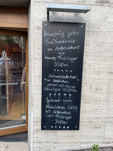 Auf Grund einer positiven Rezession im „Freies Wort“, haben wir uns am 14.05.2023 einen Mittagstisch reservieren lassen. Der Bericht in der Zeitung über die „Klause“ war geradezu überschwänglich und wir waren uns sicher, es wird ein Erlebnis der besonderen Art. Gleich vorweg, dass war es dann auch, aber sehr enttäuschender Art. Das Ambiente war ja noch recht gemütlich, aber die Tische standen etwas zu eng. Durch fehlende Stuhlgleiter oder Filze, war das Stühlerücken immer wieder unangenehm laut. Nach etwa 15 Minuten kam die Bedienung an unserem Tisch. Ohne eine Karte gesehen zu haben, nahm sie die Getränkebestellung auf. Nachdem der Nachbartisch seine Essensbestellung aufgegeben hatte, bekamen wir bei 4 Personen drei Karten wortlos auf den Tisch gelegt. Diese Speisekarte machte auf uns den Eindruck, als sei sie vom Döner-Ali um die Ecke. Plastikformat zwei mal geknickte Karte. Entspricht in keinster Weise der Erwartung einer angepriesenen gut bürgerlichen deutschen Küche. Nachdem wir unsere Bestellung aufgegeben hatten, warteten und warteten wir. Nach einer geraumen Zeit kam ein älterer Herr mit zwei Salattellern in den Händen und ungepflegten Erscheinungsbild (bunte verlotterte Jeans) und stand wortlos neben dem Tisch. Ich konnte ihn ja noch kommen sehen, da ich mit dem Rücken an der Wand gepresst gesessen habe. Wortlos und lieblos schob er die Salatteller auf den Tisch. Irgendwann hatten alle ihren Salat. Dieser schmeckte auch ganz gut und frisch. Nach dem Salat mussten wir eine halbe Ewigkeit (ca. 25 Minuten) warten, bis die ersten zwei Essen kamen und 1Stunde nachdem wir platziert wurden sind. Nach einer ganzen Zeit (ca. 10 Minuten später) kam eine Bedienung an unseren Tisch und fragte uns welches Essen noch fehlt. Wir mussten ihr auf die Sprünge helfen. Eigentlich ist es ja üblich zusammen an einem Tisch zu essen. Dies war hier nicht mehr möglich. Zum Essen: Beim Bauernschnitzel war das Fleisch einfach zu trocken. Man konnte es essen, aber das Ambiente des Tellers war zudem auch noch lieblos angerichtet. 1 Scheibe Gurke, ein paar halbierte mit Schale gekochte Kartoffeln, das Schnitzel und mit etwas Soße. Um ausreichend satt zu werden und um den Preis von 18,50€ zu rechtfertigen, hätte die doppelte Menge Fleisch auf den Teller gehört. Aber das im saftigen Zustand. Die Schale der Kartoffeln, waren teilweise unangenehm spelzig im Mund. Ein unangenehmes Gefühl. Zwei von uns bestellten den Heilbutt, der auch mit diesen Kartoffeln serviert wurde und einer nicht passenden Senfsoße. Zudem musste der Heilbutt entgrätet werden, was sich für meine 80jährige Mutter und meinem 12jährigen Sohn, als unangenehm und schwierig erwies. Der Heilbutt wurde geschmacklich völlig von dieser Senfsoße beherrscht. Dadurch schmeckte Beiden der Fisch nicht. Auch hier diese Kartoffeln mit teilweise unangenehm zu essender Schale und der Kampf mit den Gräten, waren Anlass das Essen stehen zu lassen. Preis 22,50€.. Das einzig positive war der Geschmack des Bärlauchschnitzels meiner Frau. Aber auch hier diese Kartoffeln und die lieblose Anrichtung des Gerichts. Beim Abräumen der Teller, kam keine Nachfrage oder überhaupt ein Wortlaut bei der Bedienung hervor. Auch bei der Bezahlung legte man mürrisch und ohne ein einziges Wortlaut den Rechnungszettel vor. Trotz Trinkgeld kam kein freundliches Wort oder ein Dank.