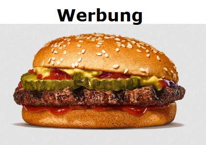 Der Hamburger hat mit der Werbung gar nichts zu tun, so wie der präsentiert wird hat es mit der Realität nichts zu tun. Das Fleisch halb so dick, rundrum so klein, auf beiden Seite 1cm kleiner, entspricht zusammen 2 cm, das man das Fleisch nicht sieht, in der Werbung schaut das Fleisch über das Brötchen. Nur ein ganz kleiner Klecks Ketchup, der war sowas von trocken, das ich selber noch Majo und Ketchup drauf gemacht habe, obwohl ich ihn ohne Gurke bestellt hatte, war er kalt.